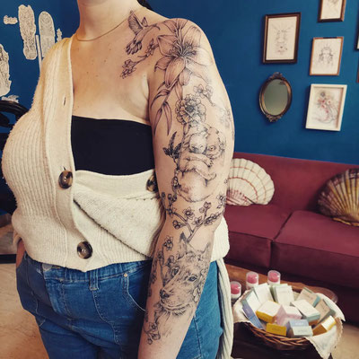 Son univers est semi réaliste et floral même si tel un caméléon, elle peut transformer son style pour apporter à votre projet, le tracé et le caractère que