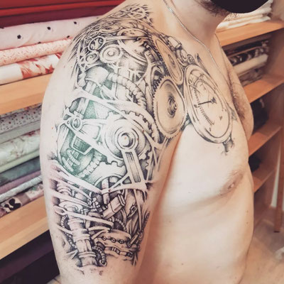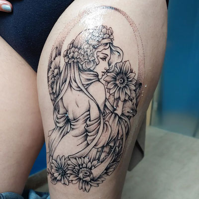La Marquise a plusieurs fonctions, plusieurs passions. Nous la connaissons dans le domaine de la couture mais elle est aussi dessinatrice techniques (DAO) et tatoueuse.