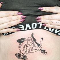 Son parcours artistique, à l'Académie Royal des beaux-arts à Liège où elle réalise un Master en dessin, lui a permis un bagage important et une compréhension du dessin. Base du tatouage.